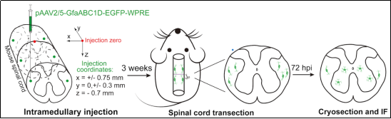 圖3?脊髓實(shí)質(zhì)注射和譜系追蹤證實(shí)Astro-GMii亞群來(lái)源于脊髓白質(zhì)的星膠細(xì)胞