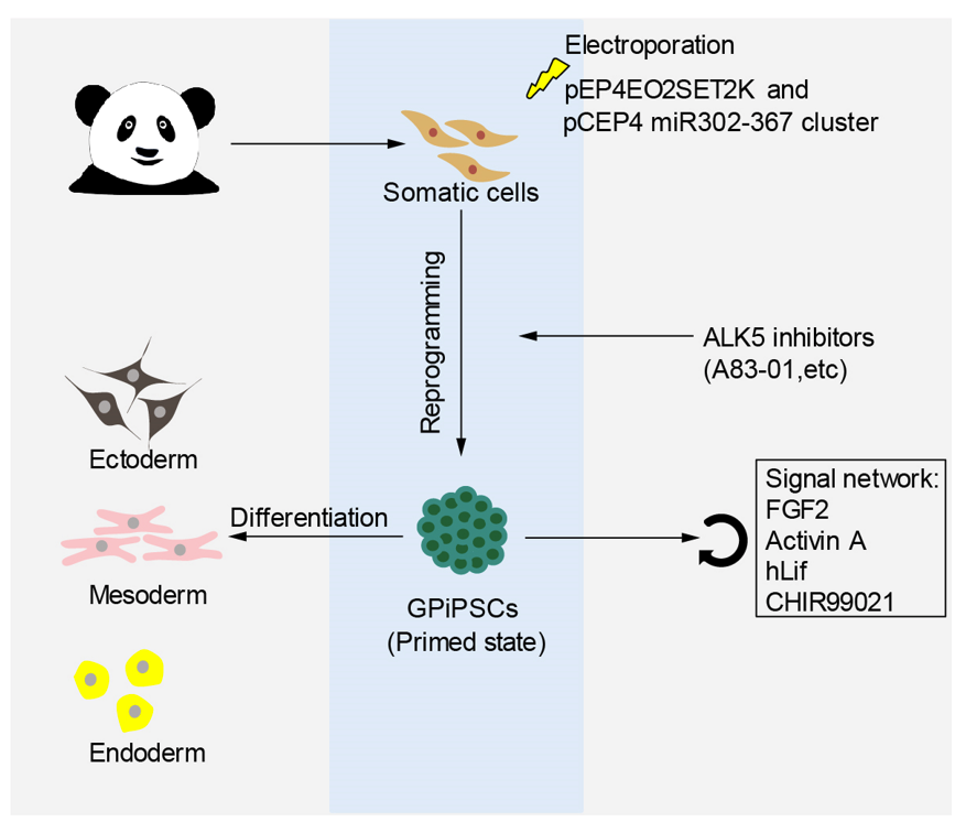 大熊貓誘導(dǎo)多能干細(xì)胞研究模式圖