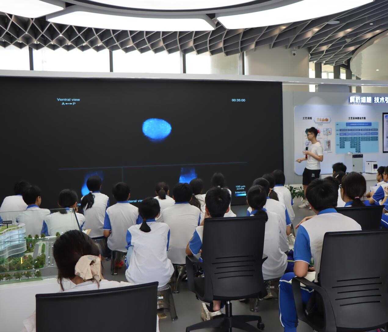 5月24日,由中國科學(xué)院廣州生物醫(yī)藥與健康研究院牽頭建設(shè)的國家“十四五”重大科技基礎(chǔ)設(shè)施——人類細胞譜系大科學(xué)研究設(shè)施(簡稱“細胞譜系設(shè)施”)在廣州國際生物島舉辦了設(shè)施開放日活動,活動以“生命數(shù)字化大國重器‘大揭秘’”為主題,為來自廣州科學(xué)城中學(xué)的40余位學(xué)生和老師詳細介紹了這一剛剛正式啟動建設(shè)的大科學(xué)設(shè)施?;顒蛹蠀⒂^、前沿科學(xué)儀器演示、科普講座和問答交流等多種形式。一方面具體且生動展現(xiàn)了細胞譜系設(shè)施建設(shè)內(nèi)容、建設(shè)進展以及預(yù)期目標(biāo),一方面深入淺出地講解了生命科學(xué)的前沿和核心細胞譜系研究的基本知識以及其在推動疾病精準(zhǔn)治療、縮短藥物研發(fā)周期等方面的重要作用,拉近了公眾與大科學(xué)設(shè)施的距離,充分激發(fā)了學(xué)生們對生命科學(xué)的興趣和探索欲望。