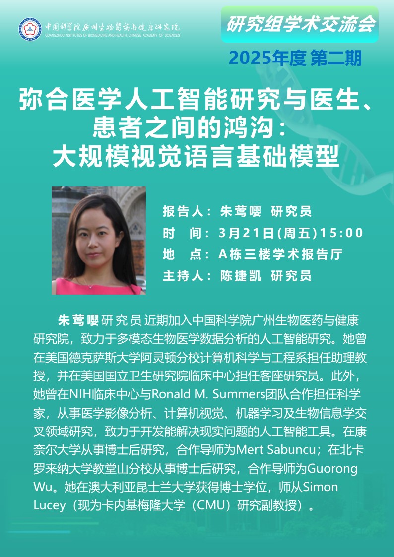 2025年3月21日研究組學術交流會(2025年度第二期):彌合醫(yī)學人工智能研究與醫(yī)生、患者之間的鴻溝——大規(guī)模視覺語言基礎模型