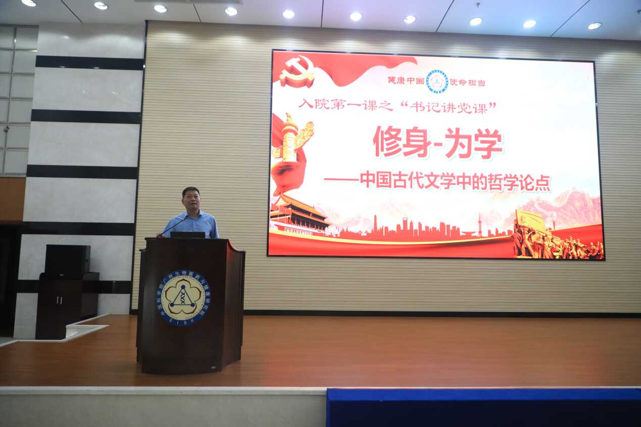 隨后黨委書記、副院長張鴻翔以“修身、為學(xué)——中國古代文學(xué)中的哲學(xué)論點(diǎn)”為題,為同學(xué)們講授“入院第一課”。他借中國古典文本中的智慧,深刻闡釋“修身”與“治學(xué)”之間的內(nèi)在聯(lián)系與哲學(xué)意涵,教導(dǎo)同學(xué)們汲取先賢哲思,涵養(yǎng)學(xué)術(shù)品格,堅(jiān)定科學(xué)報(bào)國、科技強(qiáng)國的理想信念,努力成長為有理想、有本領(lǐng)的新時代優(yōu)秀青年。?