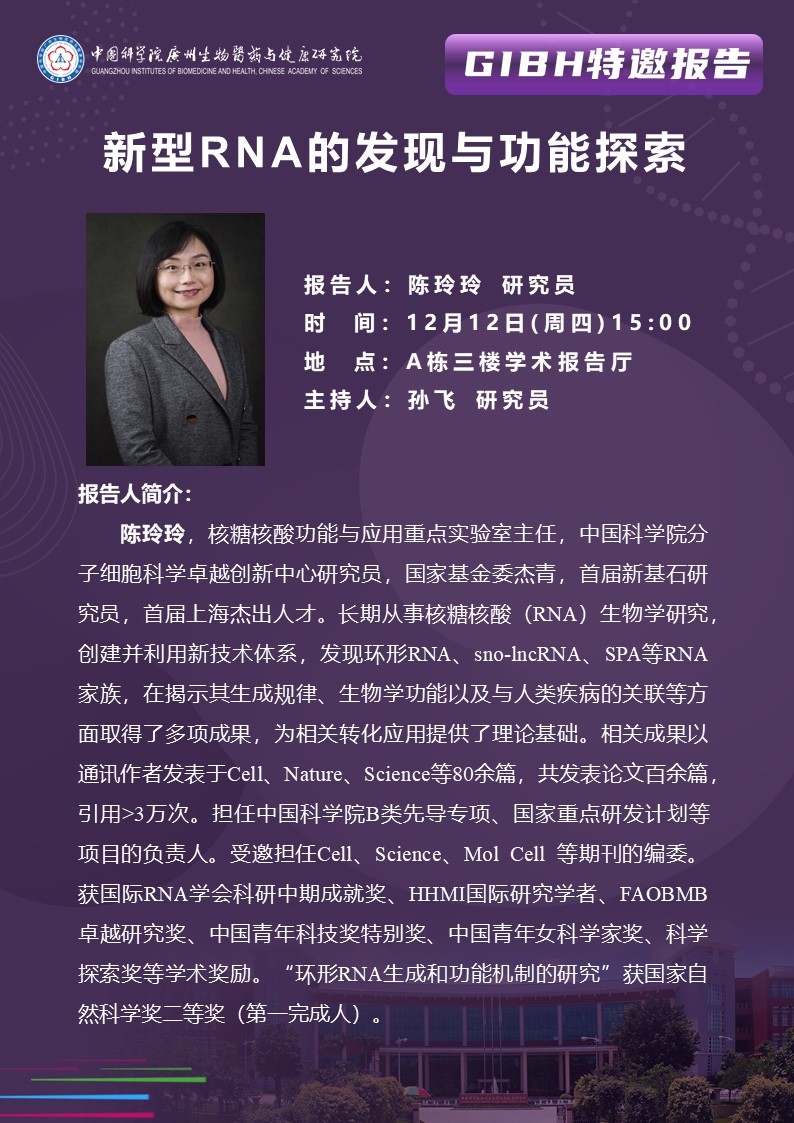 2024年12月12日特邀報(bào)告:新型RNA的發(fā)現(xiàn)與功能探索