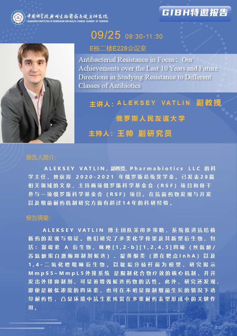 2025年9月25日特邀報告:Antibacterial Resistance in Focus:Our Achievements over the Last 10 Years and Future Directions in Studying Resistance to Different Classes of Antibiotics