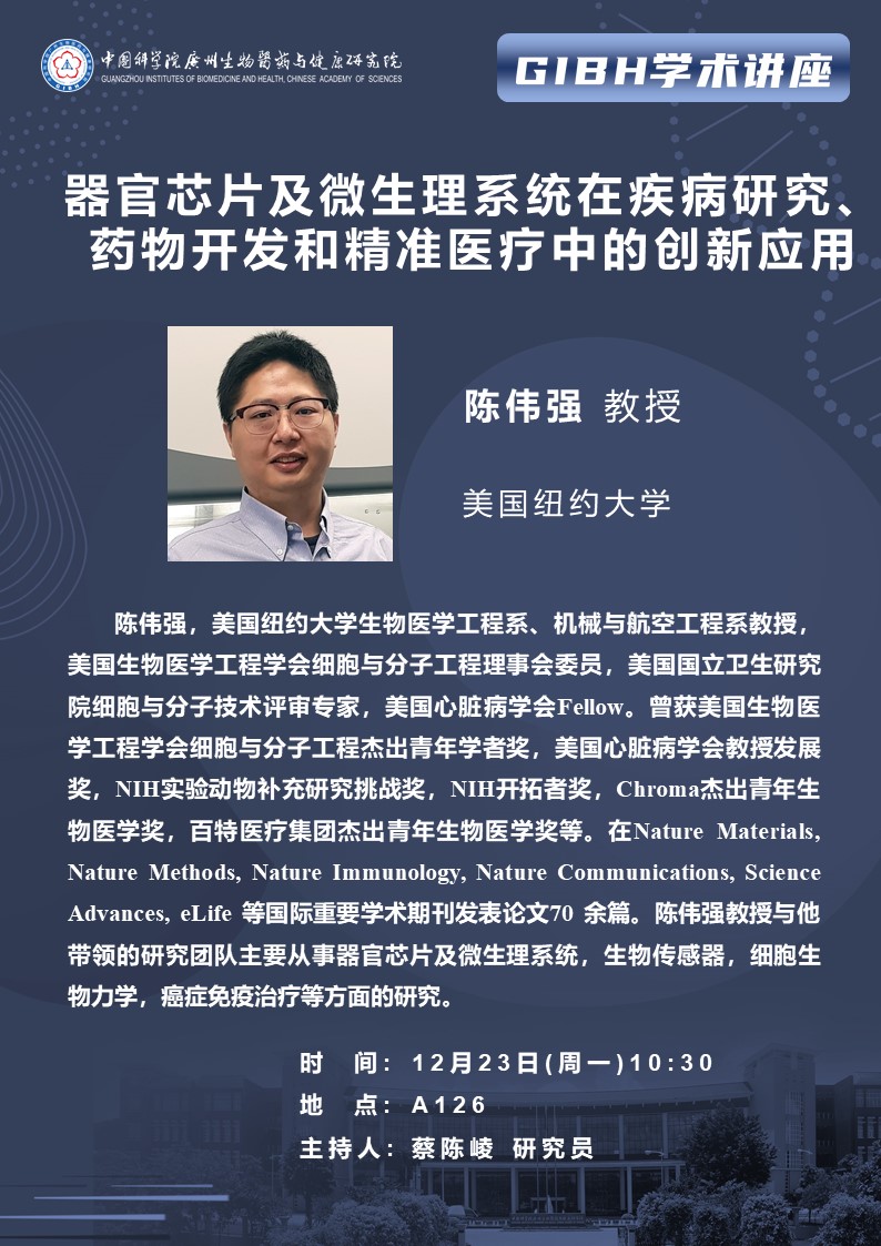 2024年12月23日學(xué)術(shù)講座:器官芯片及微生理系統(tǒng)在疾病研究、藥物開發(fā)和精準醫(yī)療中的創(chuàng)新應(yīng)用