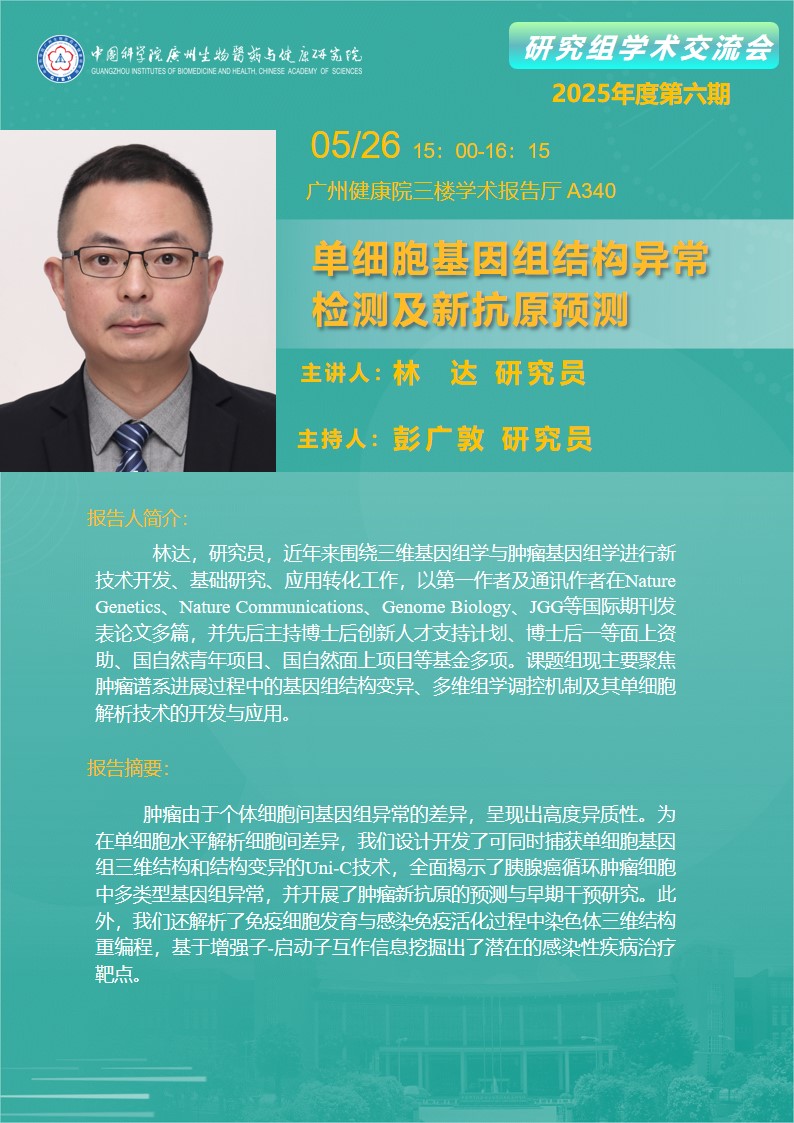 2025年5月26日研究組學(xué)術(shù)交流會(2025年度第六期):單細(xì)胞基因組結(jié)構(gòu)異常檢測及新抗原預(yù)測